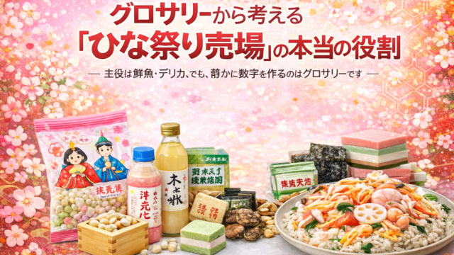 グロサリー会議室 グロサリーから考える「ひな祭り売場」の本当の役割ー行事売場の完成度はグロサリーで決まるー mixber.ms@gmail.com ― 主役は鮮魚・デリカ。でも、静かに数字を作るのはグロサリーです ― ひな祭りといえば、鮮魚の刺身盛合せや、デリカのちら …