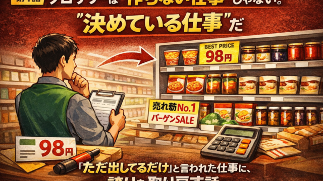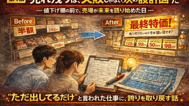 グロサリー会議室 第2話なぜ同じ商品でも、売れる店と売れない店があるのか― 配属初日、棚の前で立ち尽くした理由 ― mixber.ms@gmail.com 同じ商品、同じ価格、それでも違う結果 それは、配属初日の朝だった。 新品のエプロン。まだ固い名札。少しだけ緊張した …