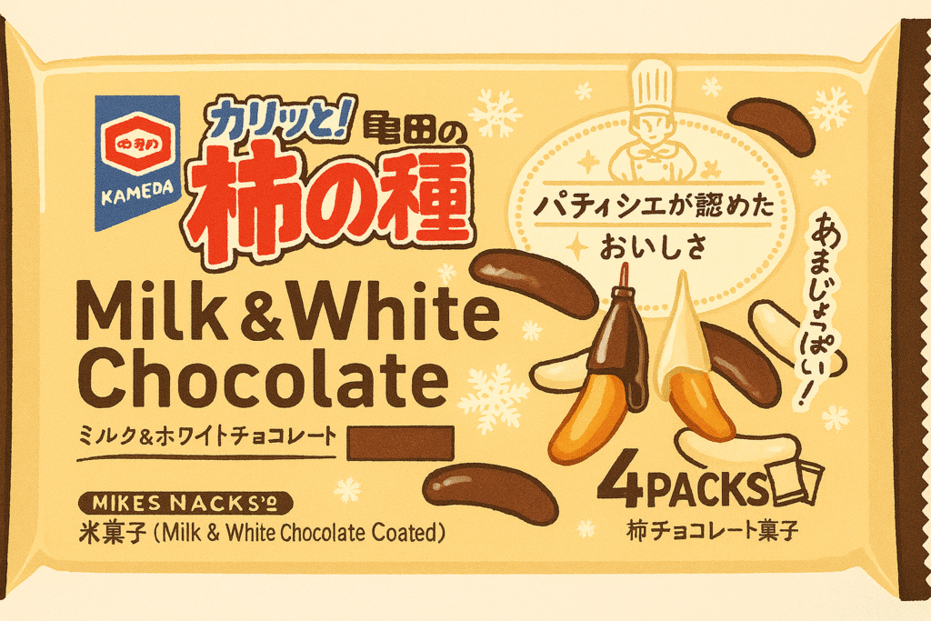 「亀田の柿の種 ミルク&ホワイトチョコレート」は、