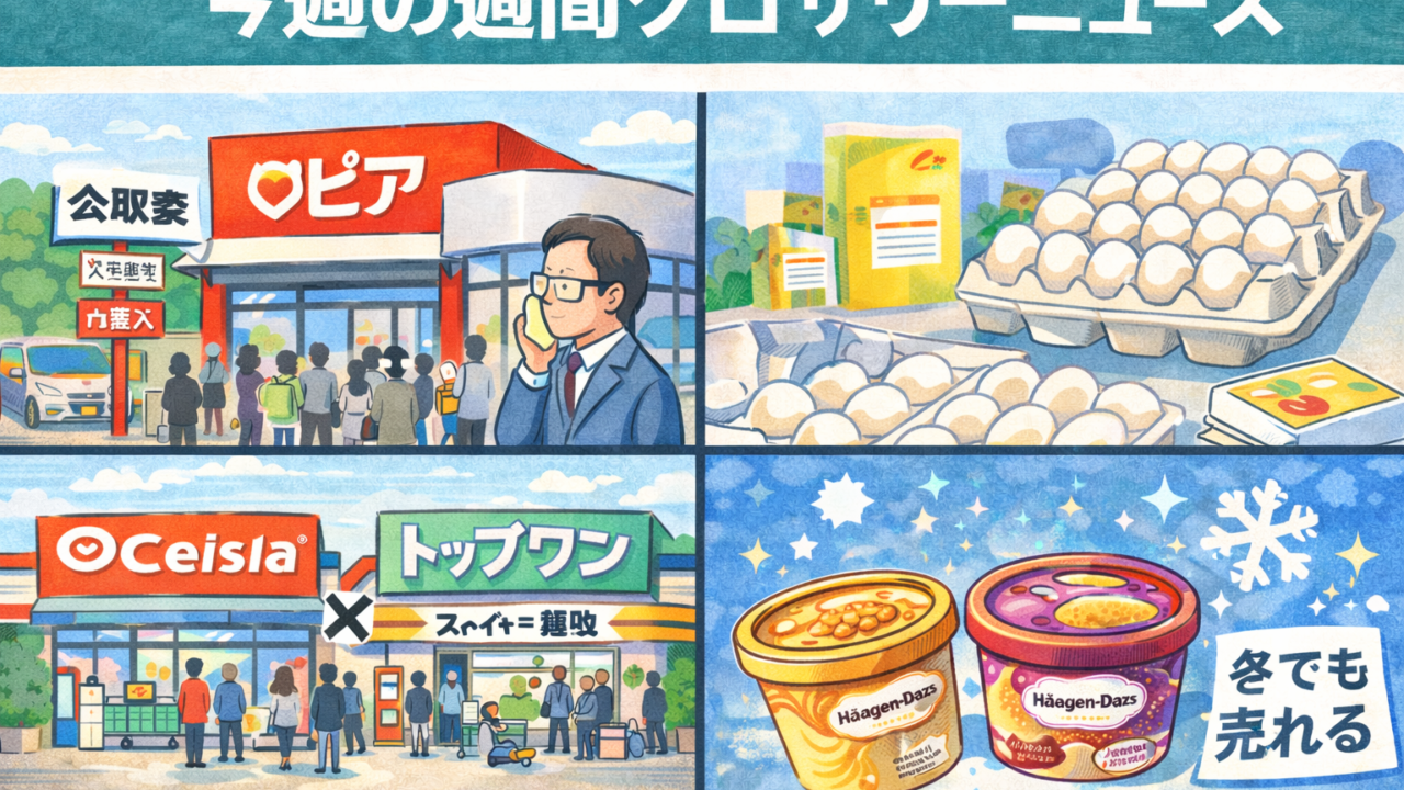 独禁法疑義に揺れる急成長SM、卵・日配の価格高騰、戦略的M&A、そして冬でも売れるプレミアムカテゴリーという、現場の売場・仕入れ・価格競争に直結するテーマばかりです。