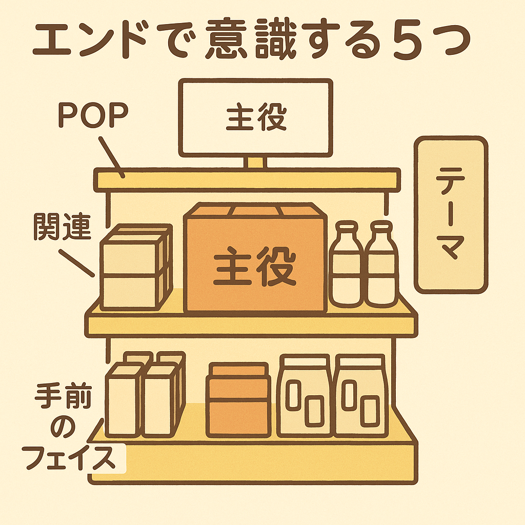 エンドで最も大事なのは、「何の売場か、3秒で伝わること」。